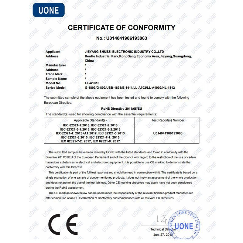 • Certification: CE